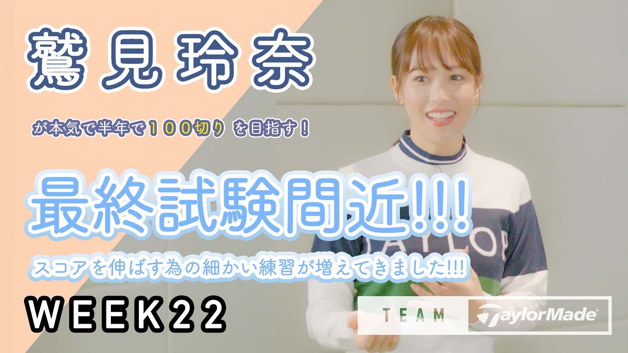 テーラーメイド契約の市川里菜ティーチングプロ指導のもと、半年で100切りを目指す鷲見玲奈に密着します。最終試験に向けて、スコアアップのための細かい練習を重ねて調整をしていきます。