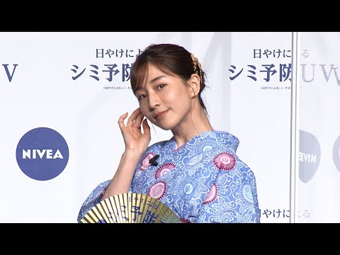 フリーアナウンサーで女優の田中みな実が、日焼け止め「ニベアUV ディーププロテクト&ケア」新CM発表会に出席した。CMで着用した浴衣姿であでやかに登場。「浴衣を着ると女の子はみんなテンションが上がると思うし、男性にも、多少はドキッとしてもらえるのかなと思う」と話した。発表会では、頬やうなじに日焼け止めを塗るしぐさを披露。しとやかな動きは日本舞踊からヒントを得たもので、名付けて「艷(あで)肌所作」。色っぽいうなじを見せた後、最後にウインクをして決めた。