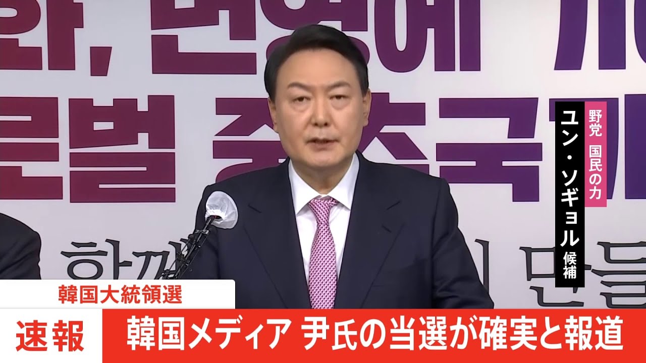 きのう投票が行われた韓国大統領選挙で、韓国メディアは先ほど、保守系の最大野党候補・尹錫悦氏の当選が確実になったと報じました。