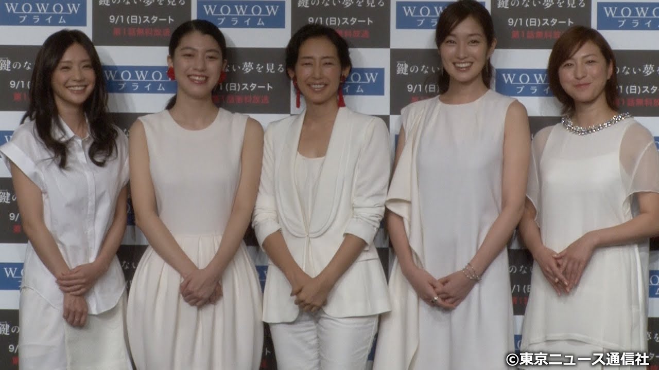 9月1日にスタートするWOWOWプライムの連続ドラマ「鍵のない夢を見る」(日曜午後10:00)の記者会見が行われ、主演を務める女優の倉科カナ、成海璃子、木村多江、高梨臨、広末涼子の5人が白一色の衣装で登壇した。
