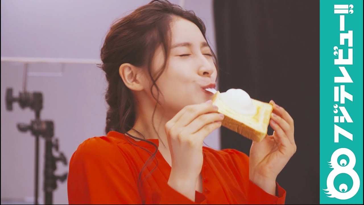アイスである「雪見だいふく」を食パンとチーズの上に乗せて焼いてしまうという“禁断”の楽しみ方を、白い衣装に身を包み「雪見だいふく」に扮した土屋が“雪見タオ”となり、雪見だいふくになりきって紹介する。