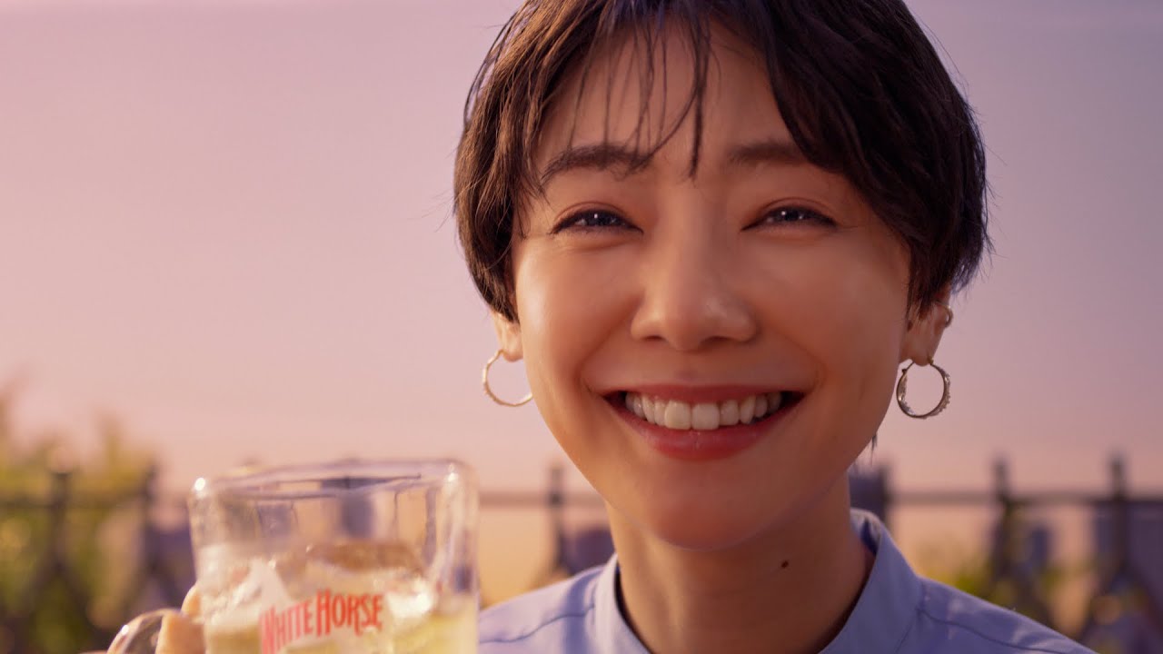CMは、倉科カナさんが仲間と乾杯して「ホワイトホース」ハイボールを一口飲み、「あーっ。シアワセ」とキュートな笑顔を見せる。最後に、「美味(ウマ)いほーっす、WHITEHORSE」というフレーズとともに、仲間を呼び込むシーンにも注目だ。