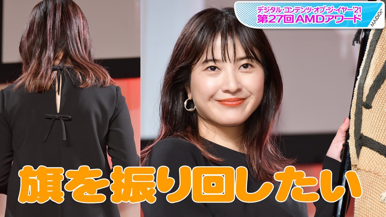 吉高さんは同賞の表彰楯のほか、グランプリフラッグを受け取ると満面の笑み。その後のスピーチで「立派な旗を持って、このような音楽が流れていると強くなった気がします。旗を振り回したいのをぐっとこらえてコメントします」といい、最後には「また楽しそうなアワード呼んでください」と呼びかけるなどし、会場を笑いに包んだ。