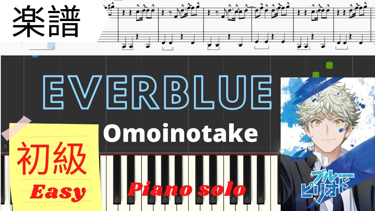 【アニメ】ブルーピリオドOP OmoinotakeよりEVERBLUEのピアノソロアレンジ初級レベルです。このアニメも漫画よんで面白いなと思っていたのでこれから楽しみです!!