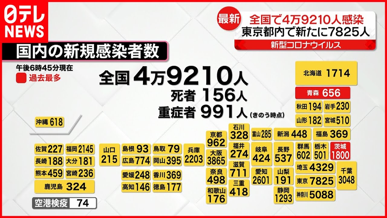 一方、NNNのまとめでは全国では、新たに49210人の感染と156人が亡くなったことが確認されました。