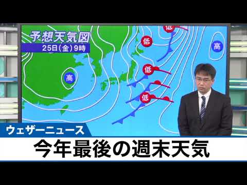 今週末は今年最後の週末です。 気になるお天気はどうでしょうか 今週末は、明日冬型の気圧配置から短い周期で天気が変わりそうです。 日曜日には、西・東日本でも下り坂に向かいそうです。 2020Casterウェザーニュースキャスターゲリラ豪雨ゲリラ雷雨ニュース予報北日本台風台風情報地震大雨天気天気予報情報東日本気象気象予報士減災西日本防災