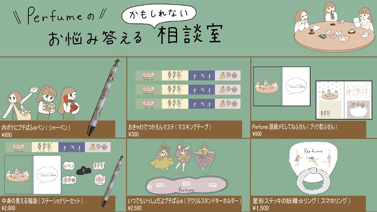 見た目からおしゃれでかわいいグッズとなっていますので、さまざまな場面でお使いいただき、“あなた”の日常を「Perfumeのお悩み答えるかもしれない相談室」の雰囲気に包まれたものにしてくださいね!