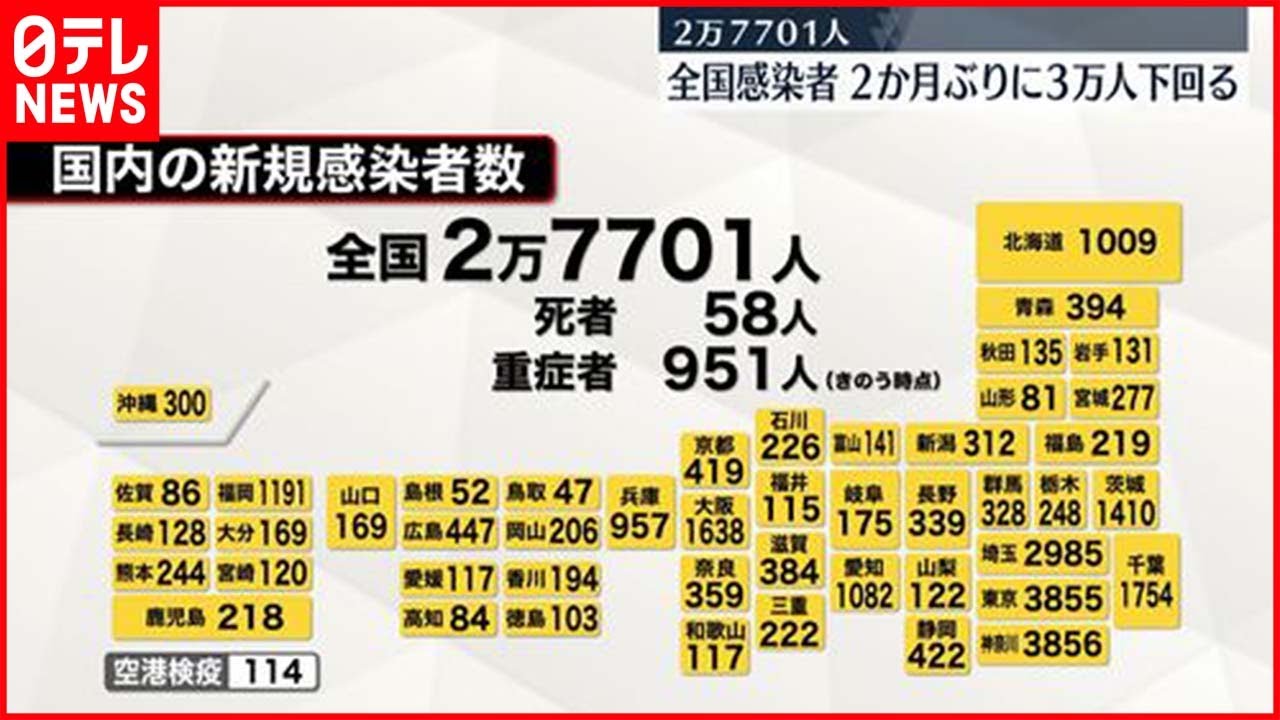 NNNのまとめでは、全国で、新たに2万7701人の感染と58人が亡くなったことが確認されました。3万人を下回るのは1月17日以来2か月ぶりです。