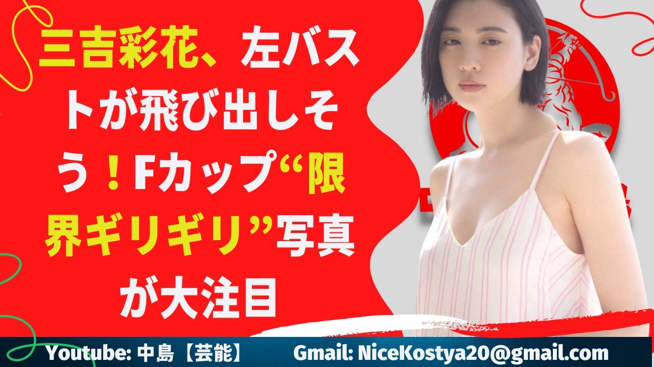三吉の胸は推定Fカップとも言われる。バストが大きいうえにインナーの切り込みも深いため、今にもこぼれ出そうに見える。