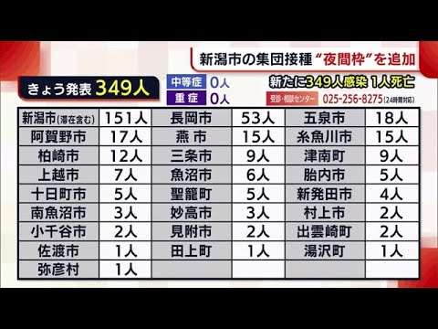 新潟県内では29日、新たに新潟市で151人、長岡市で53人など合わせて349人の新型コロナウイルス感染と、高齢者1人の死亡が発表されました。一日の新規感染者数は、6日連続で前の週の同じ曜日を上回っています。県内では依然として子どもから親にうつるなど家庭内感染が多いことから、県は家庭内でも感染症対策を行うよう呼びかけています。また、新潟市は3回目ワクチンの集団接種について、金曜日の夜間の枠を追加。 4月以降、4つの会場で午後7時45分まで接種が可能となります。 ワクチン新型ウイルス感染拡大で新型コロナウイルス新潟市新潟県