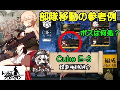 ドールズフロントライン、日本鯖初の大型イベント-キューブ作戦でのE-3MAPでボスを見つける為の部隊の動かし方の参考例です。