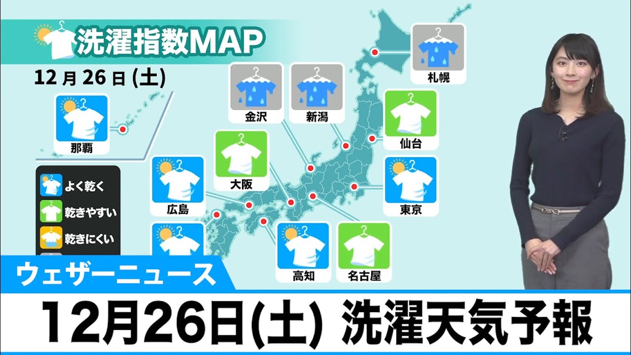 ウェザーニュースキャスター檜山沙耶が、12月26日の洗濯天気予報をお伝えします▼ウェザーニュースLiVE ▼ピンポイント天気 2020Casterウェザーニュースキャスターゲリラ豪雨ゲリラ雷雨ニュース予報北日本台風台風情報地震大雨天気天気予報情報東日本気象気象予報士減災西日本防災