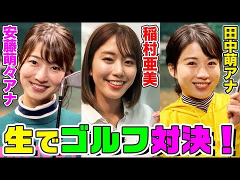 神スイングの稲村亜美vs田中萌アナvs安藤萌々アナ ゴルフ対決