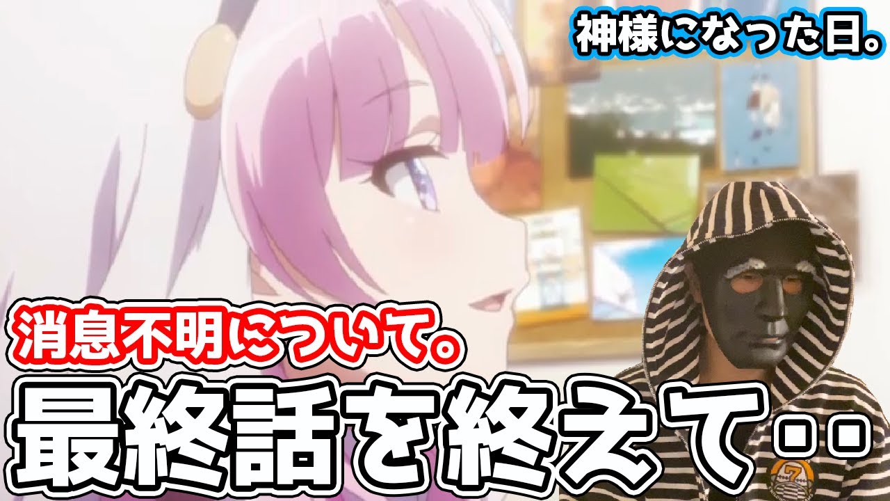 Share Facebook Twitter Pinterest LinkedIn 今回は、神様になった日の第12話である最終話を見終わっての感想と、麻枝准さんの消息不明についてを取り上げました。 【エルズと繋がってくれる方】 Twitter: tiktok: もし1%でもこの動画このチャンネルに興味を持っていただけたらチャンネル登録していただけると非常に嬉しいです。 視聴者の皆様と一緒にアニメや漫画を楽しめるコンテンツを作り上げていきたいので、ぜひ楽しみましょう! 神様になった日