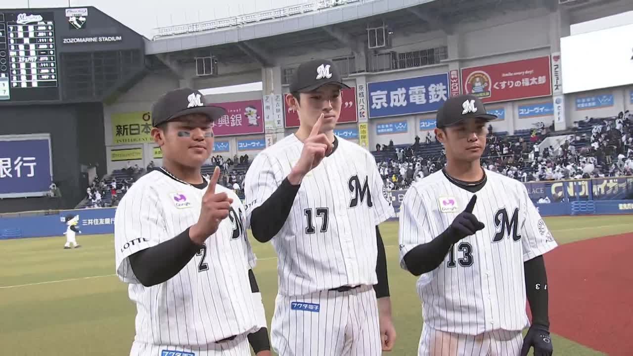 2022/4/3 マリーンズ・平沢大河選手・松川虎生選手・佐々木朗希投手のヒーローインタビュー動画。