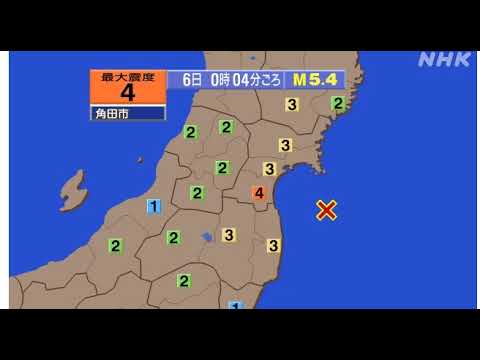 6日午前0時4分ごろ、宮城県で震度4の揺れを観測する地震がありました。