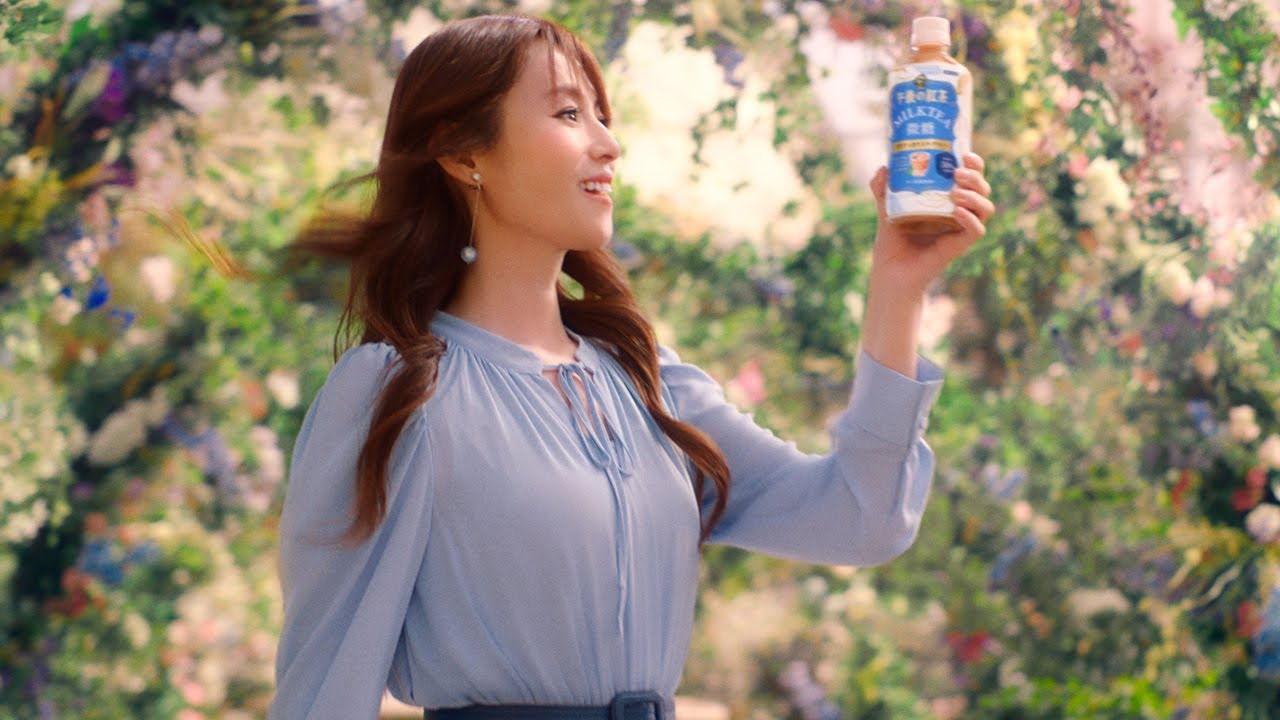 新CMは「贅沢な味わい。カロリーは半分。ミルクティー微糖誕生!」編(15秒)。新たな出会いの季節に、色とりどりの花々が美しいイングリッシュガーデンで、「キリン 午後の紅茶 ミルクティー 微糖」と深田さんがうれしい出会いを果たす様子を、春のウキウキ感とともに描いている。4月5日から放送。