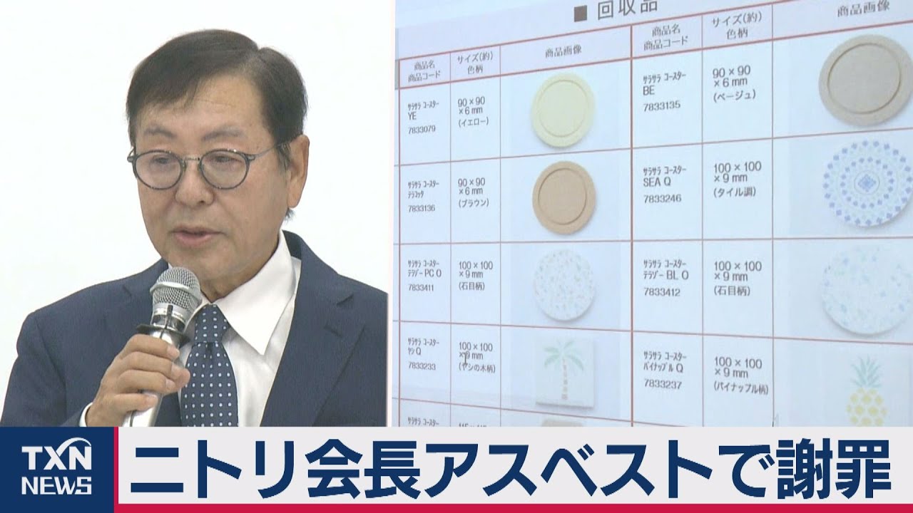家具・日用品大手のニトリHDの似鳥昭雄会長はさきほど会見を開き、ニトリが販売していた珪藻土のコースターやバスマットの一部に法令の基準を超えるアスベストが含まれていた問題について謝罪しました。