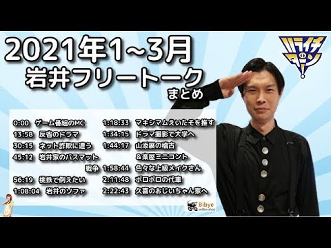 Share Facebook Twitter Pinterest LinkedIn 0:00 ゲーム番組のMC 13:58 反省のドラマ 30:15 ネット詐欺に遭う 45:12 岩井家のバスマット戦争 56:19 桃鉄で例えたい 1:08:04 岩井のソファ 1:18:33 マキシマムえいたそを推す 1:34:15 ドラマ撮影で大学へ 1:44:17 山添展の稽古&楽屋ミニコント 1:58:44 色々な上級メイクさん 2:11:48 ボロボロの代車 2:22:43 久喜のおじいちゃん家へ 今ここにある危機とぼくの好感度について