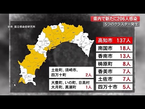 地域別にみてみますと、高知市が137人と最も多く、次いで南国市が18人、香南市が13人などとなっていて、あわせて15の市町村で感染が確認されています。