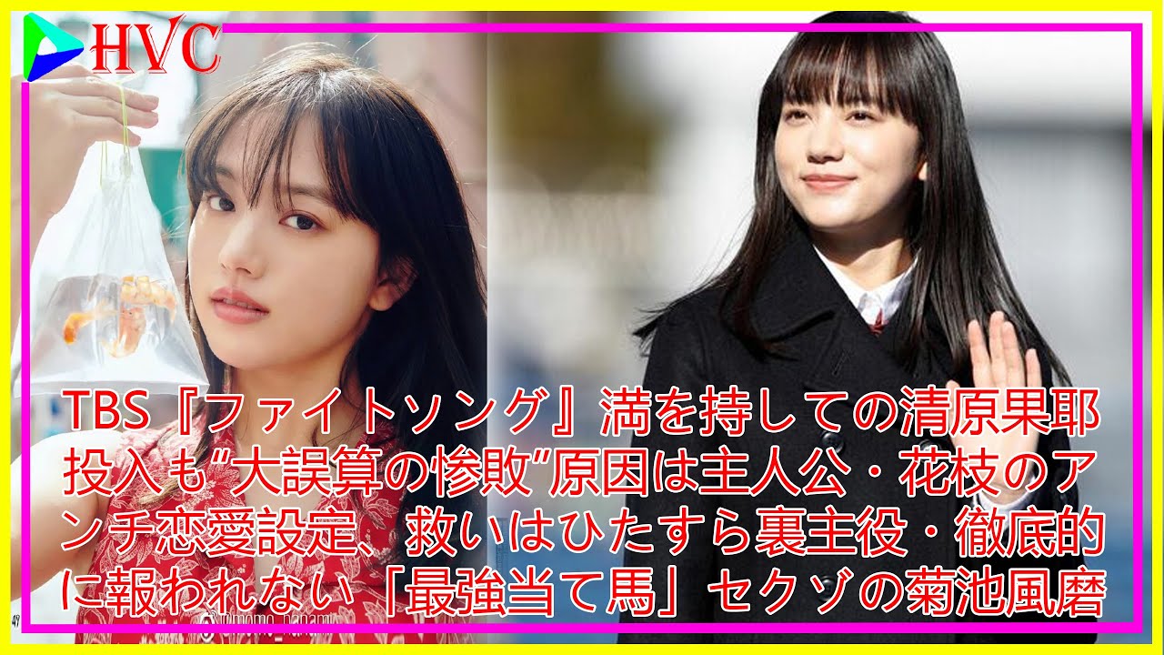 Share Facebook Twitter Pinterest LinkedIn #HVC HVCTBS『ファイトソング』満を持しての清原果耶投入も“大誤算の惨敗”原因は主人公・花枝のアンチ恋愛設定救いはひたすら裏主役・徹底的に報われない「最強当て馬」セクゾの菊池風磨清原果耶