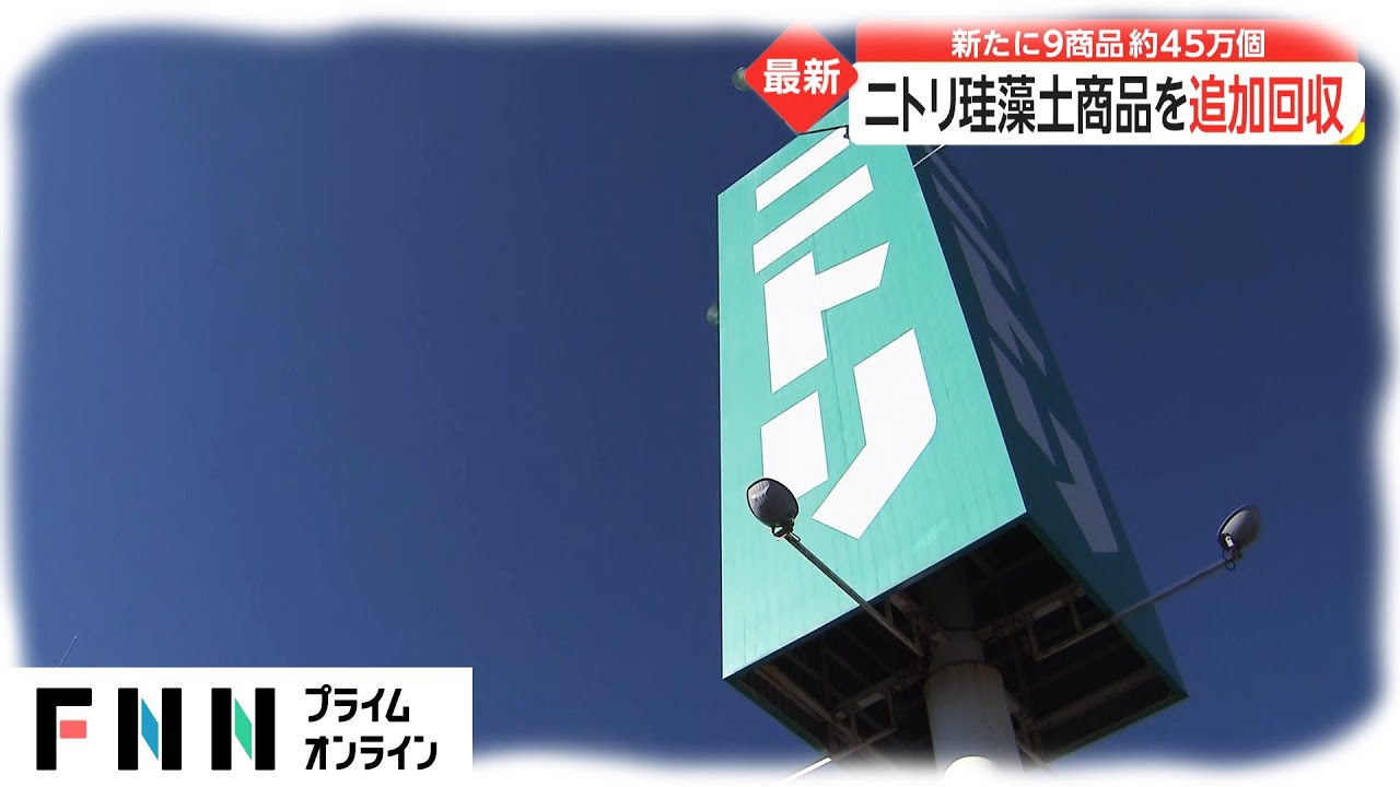 家具大手のニトリは、湿気を吸収する能力が高い珪藻土のバスマットなど9商品、およそ45万個を自主回収すると発表した。