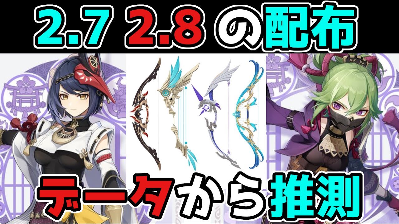 原神げんしん最新バージョンVer2.6/層岩巨淵そうがんきょえんにて、2.7と2.8の配布キャラ武器「データ」から推測についてご紹介した動画になります。旅人の皆さんにガチャで神里綾人(カミサト)ウェンティ神里綾華(かみさとあやか)夜蘭(イェラン)久岐忍(くきしのぶ)雷電将軍と珊瑚宮心海(サンゴノミヤココミ)と八重神子(やえみこ),申鶴(しんかく),雲菫(うんきん),魈(しょう),甘雨(かんう),鍾離(しょうり),荒瀧一斗(あらたきいっと),ゴロー,アルベド,エウルア,胡桃(フータオ)とタルタリヤとトーマと宵宮(ヨイミヤ)と早柚(サユ)と九条裟羅(サラ)が出ますように。報酬として無料で原石モラ育成素材豪華な宝箱天賦突破素材貴重な宝箱冒険経験値聖遺物稲妻評判経験値などが貰えます。
