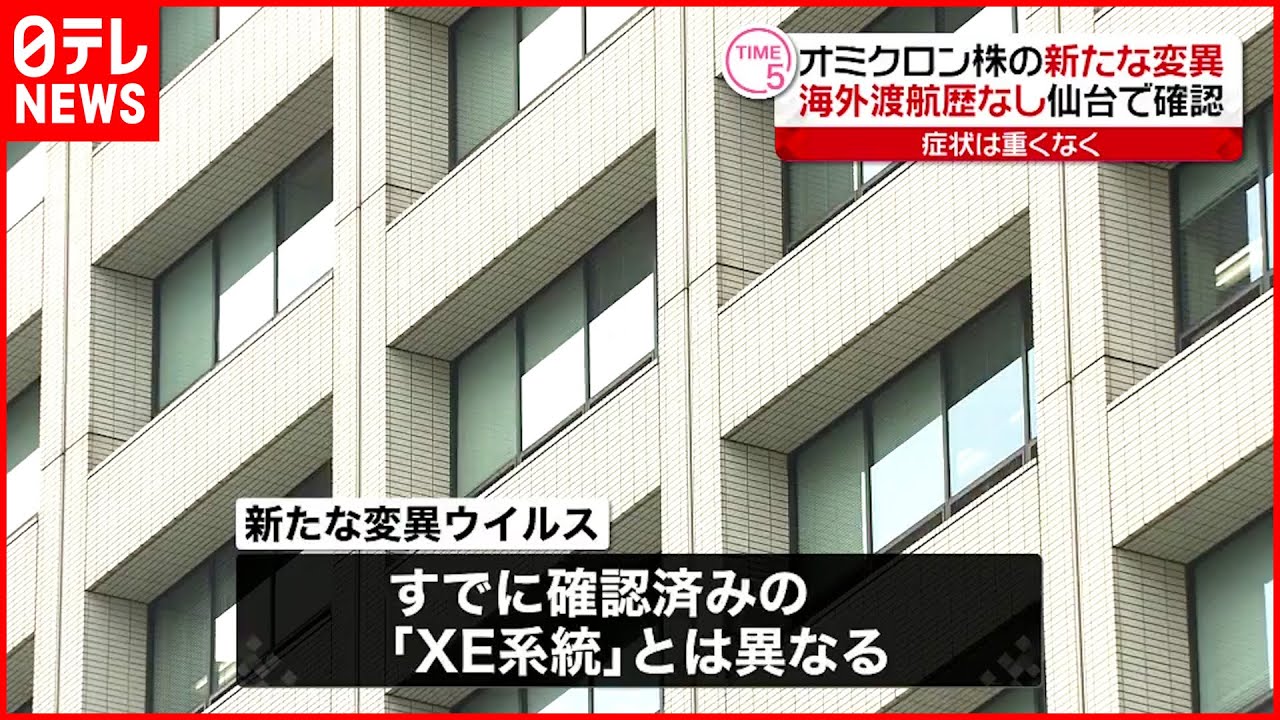 厚生労働省は、新型コロナウイルスの新たなオミクロン株の組み換え体の変異ウイルスが、宮城県仙台市居住の感染者から確認されたと発表しました。