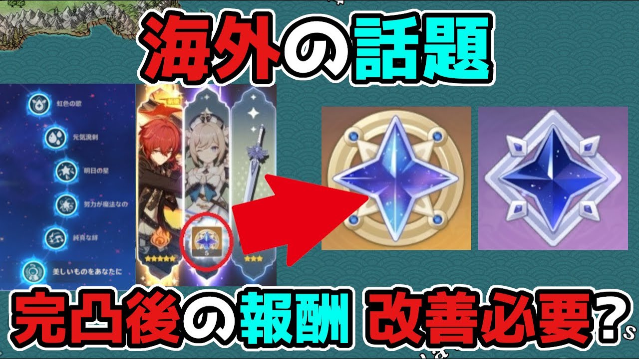 原神げんしん最新バージョンVer2.6/層岩巨淵そうがんきょえんにて、げんしんでキャラ完凸後のガチャ被りで報酬アップ必要?海外の話題についてご紹介した動画になります。旅人の皆さんにガチャで神里綾華(かみさとあやか)神里綾人ウェンティ夜蘭(イェラン)久岐忍(くきしのぶ)久喜忍と雷電将軍と珊瑚宮心海(サンゴノミヤココミ)と八重神子(やえみこ),申鶴(しんかく),雲菫(うんきん),魈(しょう),甘雨(かんう),鍾離(しょうり),荒瀧一斗(あらたきいっと),ゴロー,アルベド,エウルア,胡桃(フータオ)とタルタリヤとトーマと宵宮(ヨイミヤ)と早柚(サユ)と九条裟羅(サラ)が出ますように。他の動画などでは原石モラ育成素材豪華な宝箱天賦突破素材貴重な宝箱冒険経験値聖遺物稲妻評判経験値などの入手方法などもご紹介しています。