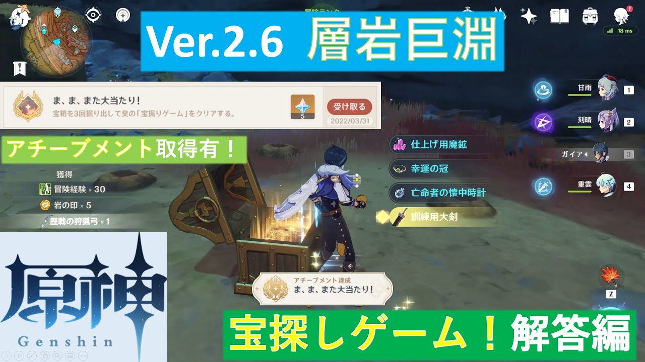 #原神 #げんしん #層岩巨淵 #そうがんきょえん #宝探しゲーム #宝探し #ver2.6 #Genshin #Genshin_impact #新マップ #攻略 #解説 #Treasure_hunt