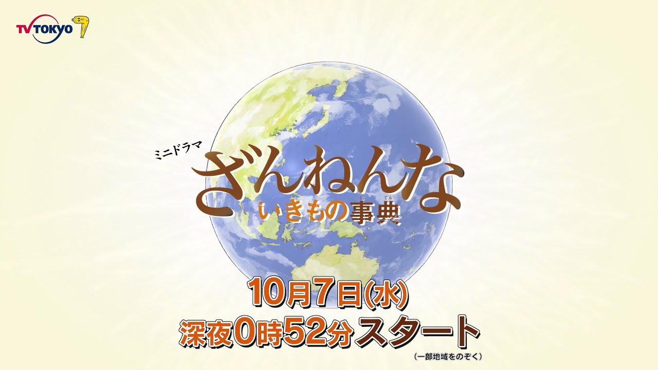 10月7日(水)深夜0時52分から、ミニドラマ「ざんねんないきもの事典」の放送を開始します。また、動画配信サービス「Paravi(パラビ)」にて放送当日夜9時から毎話独占先行配信も決定しました。