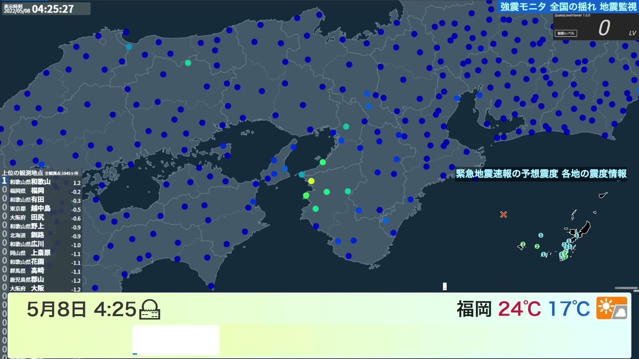 Share Facebook Twitter Pinterest LinkedIn <地震情報> 4時24分頃、地震がありました。震源地は和歌山県北部、震源の深さは約10km、地震の規模はM2.5と推定されます。この地震による津波の心配はありません。 この動画はAutoUploaderによって自動生成されたものです。This video was created by AutoUploader. EventId:20220508042456 地震緊急地震速報震源情報