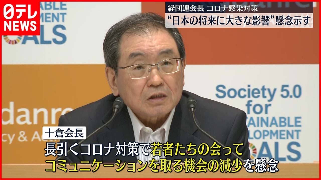 経団連の十倉雅和会長は新型コロナの感染対策で若者のコミュニケーションの機会が減っているとして、「日本の将来に大きな影響を及ぼす」と懸念を示しました。