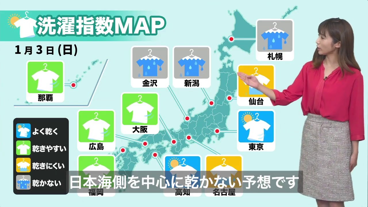 1月3日(日)洗濯天気予報をウェザーニュースキャスター眞家泉がお伝えします。▼最新の天気予報はLiVEでチェック お天気キャスターと気象予報士が生解説▼眞家泉Twitterアカウント 2020Casterウェザーニュースキャスターゲリラ豪雨ゲリラ雷雨ニュース予報北日本台風台風情報地震大雨天気天気予報情報東日本気象気象予報士減災西日本防災