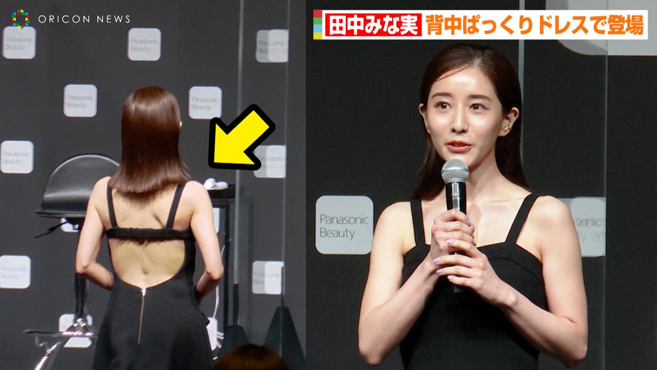 田中は、背中から腰まで背面の開いた黒ドレスで登場。美しいデコルテも主張する大胆衣装に話が及ぶと、田中は1周ターンをして会場を魅了した。