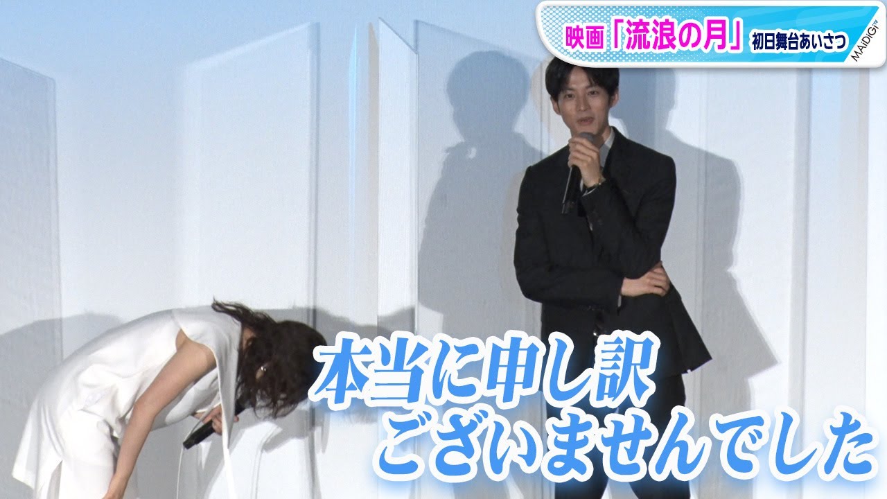 女優の広瀬すずさんと俳優の松坂桃李さんのダブル主演映画「流浪の月」(李相日監督)の公開初日舞台あいさつが5月13日、東京都内で行われ、広瀬さんと松坂さんのほか、横浜流星さん、多部未華子さん、内田也哉子さん、李監督らが登場した。