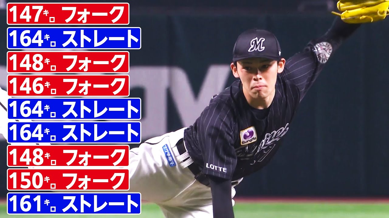 本日の千葉ロッテ・佐々木朗希が奪った奪三振の球速まとめ。