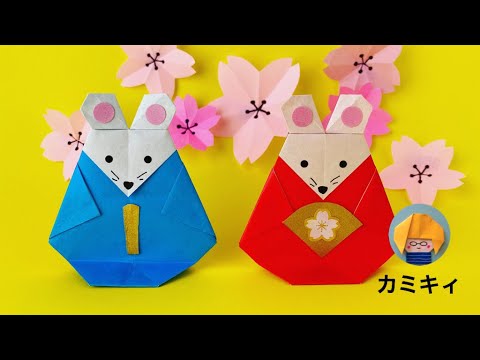 ひな祭りの飾りに!1枚で作れるねずみのおひなさまの折り紙を考えてみました。立てて飾れます。