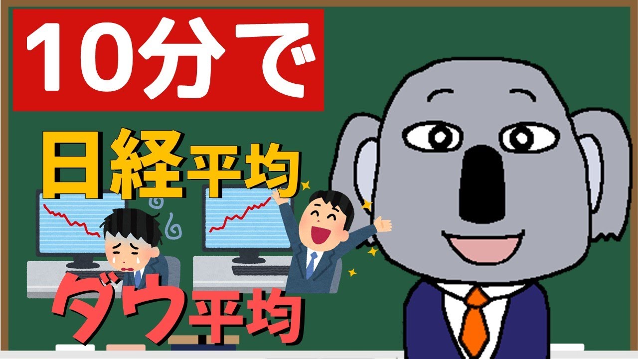 コロナショック暴落によりニュース頻出となったワード、日経平均株価・ダウ平均株価について、コアラ先生がスライド形式でわかりやすく解説します!