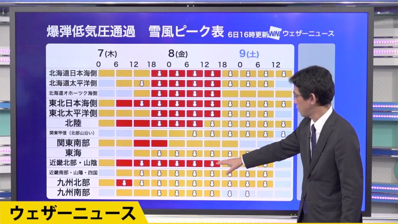 明日7日(木)は低気圧が日本海で急発達し、いわゆる爆弾低気圧となる見込みです。低気圧が東に進むとともに、西日本の上空には前回の「年越し寒波」を上回るような強い寒気が流れ込みます。 九州や四国を含む広い範囲で雪が降り、福岡や広島などの市街地も雪が積もる見込みです。冬用タイヤや滑り止めがないと通行できない道路が増える可能性があります。山陰の沿岸部などは風が強く、吹雪による視界悪化にも警戒が必要です。 2020Casterウェザーニュースキャスターゲリラ豪雨ゲリラ雷雨ニュース予報北日本台風台風情報地震大雨天気天気予報情報東日本気象気象予報士減災西日本防災
