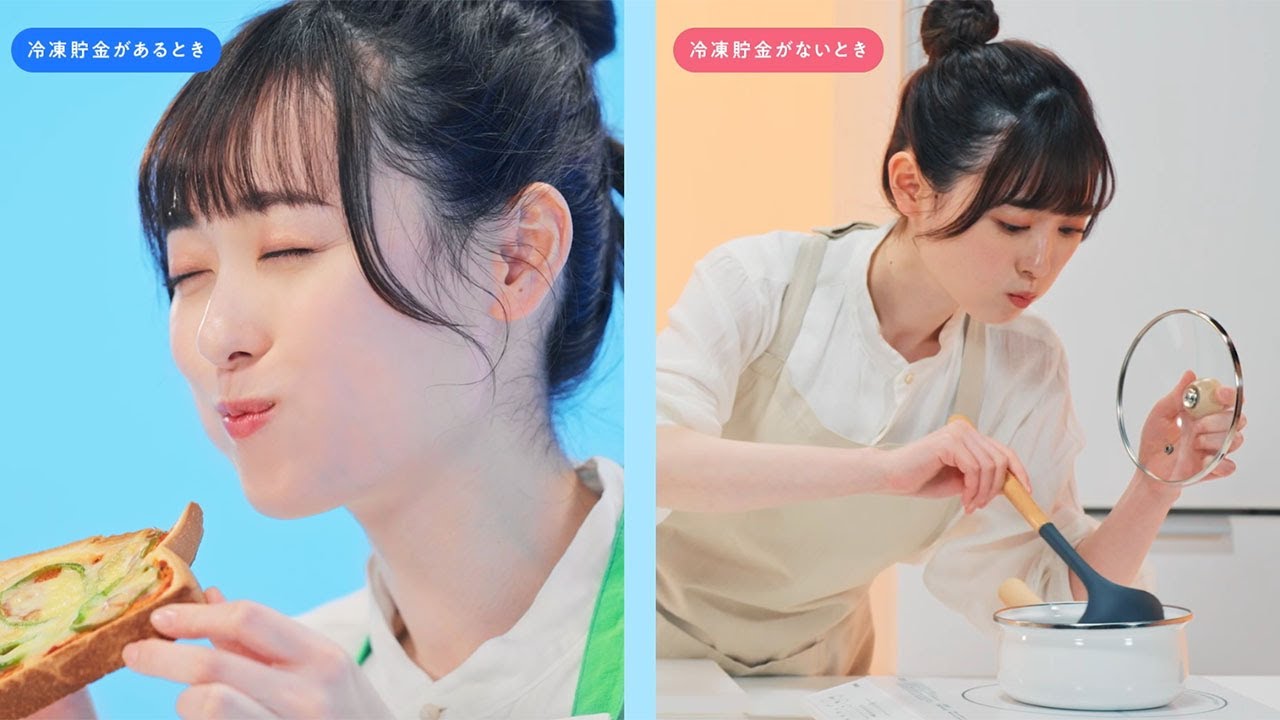 同社では、食材やおかずを冷凍してストックしておく新習慣「冷凍貯金」を提案し、「冷凍貯金ラボ」を設立。その「冷凍貯金ラボ」のアンバサダーに福原さんを起用し、「冷凍貯金」の時短時間を検証した今回のムービーを製作した。