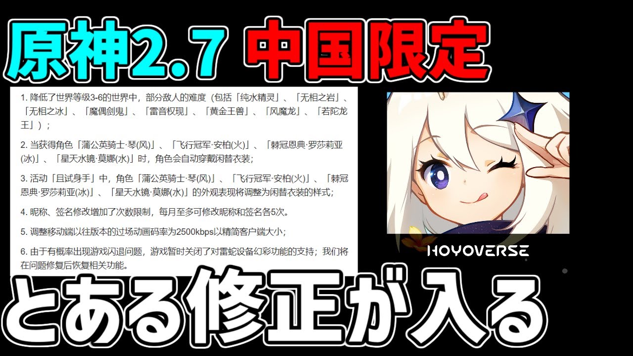 2.7のアプデ情報公開!今回は初心者救済!純水精霊などボスナーフ!稲妻のデイリー任務弱体化!