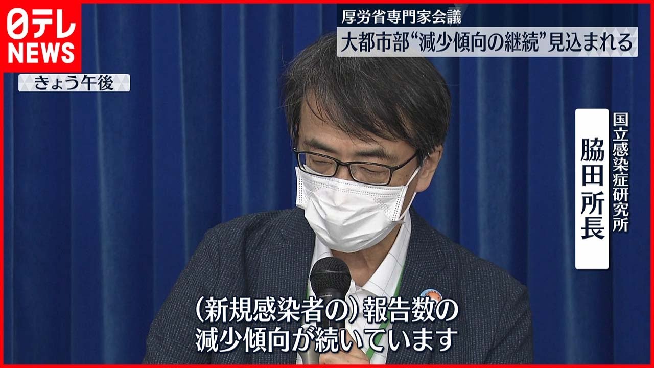 新型コロナウイルスの感染状況などを分析する厚生労働省の専門家会議は、全国の感染者は減少傾向で、今後も大都市部では減少傾向の継続が見込まれるとの分析結果を報告しました。