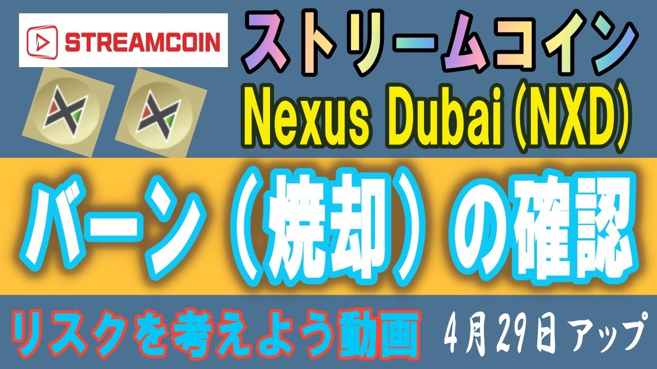 ストリームコインとNexus Dubai(NXD)がバーン(焼却)を実施しました。