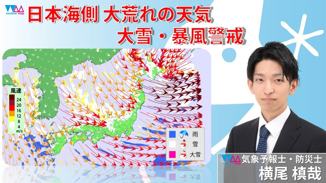 日本海側を中心に大荒れの天気となっています。 あすも上空には非常に強い寒気が流れ込むため、大雪や暴風雪などに警戒が必要です。 また、寒さが一段と厳しくなります。 あすは不要不急の外出は控えたほうが懸命です。#ウェザーマップch #横尾槙哉 ーーーーーーーーーーーーーーーーーーーーーーーーーまだまだ未熟ですが暖かく見守っていただければ幸いです。毎週木曜日21時からは横尾槙哉が配信してます。 これからもよろしくお願いします!横尾槙哉ツイッター ウェザーマップ天気予報気象予報士