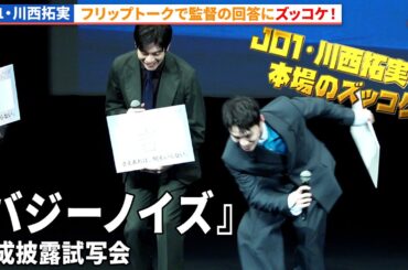 JO1川西拓実まるで新喜劇?まさかのオチに盛大なズッコケ!桜田ひより×井之脇海×栁俊太郎×円井わんに暴露される素性:『バジーノイズ』完成披露試写会ダイジェスト