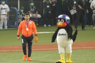 OLYMPICS 2021.09.11 柔道金メダリスト・ウルフ アロン選手による始球式でメダリスト3人を笑わせようとするつば九郎ww 2021.09.11 プロ野球 ヤクルトスワローズvs横浜ベイスターズ・東京オリンピック100kg超級…