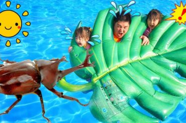 【寸劇】夏休みプールごっこ!巨大カブトムシが現れた!親子あるある!おままごと – はねまりチャンネル