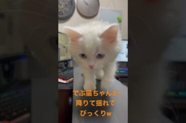 デブ猫ちゃんが飛び降りたら地面が揺れてびっくり(笑)