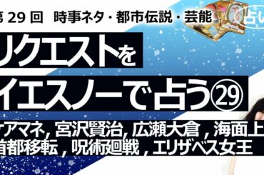 CELEBRITY 2022.10.30 【29回目】イエスノーでリクエストを占いまくるコーナー……ケアマネージャー、宮沢賢治、広瀬アリス大倉忠義、海面上昇、首都移転、アニメ呪術廻戦、エリザベス女王【占い】(2022/10/26撮影)…